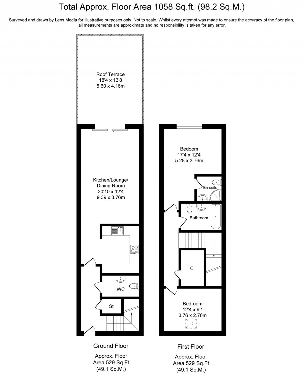 One enters the building via the secure telephone entry system and proceeds via the communal areas up to the lift-serviced sixth floor, where one can access the private living spaces, which extend to in excess of a most generous 1,055 square feet in total and are thoughtfully arranged over two inviting levels; entering via the reception hallway with its convenient two-piece cloakroom/WC and spindled staircase to the upper floor, before proceeding through into the magnificent 30’ open plan main living area, which is filled with natural light via the uPVC double glazed patio doors. This wonderfully sociable environment lends itself perfectly to entertaining, with guests able to spill out onto the 18’ sun terrace, with its recently replaced composite decking, for an after-dinner cocktail or two and soak up those breath-taking views.